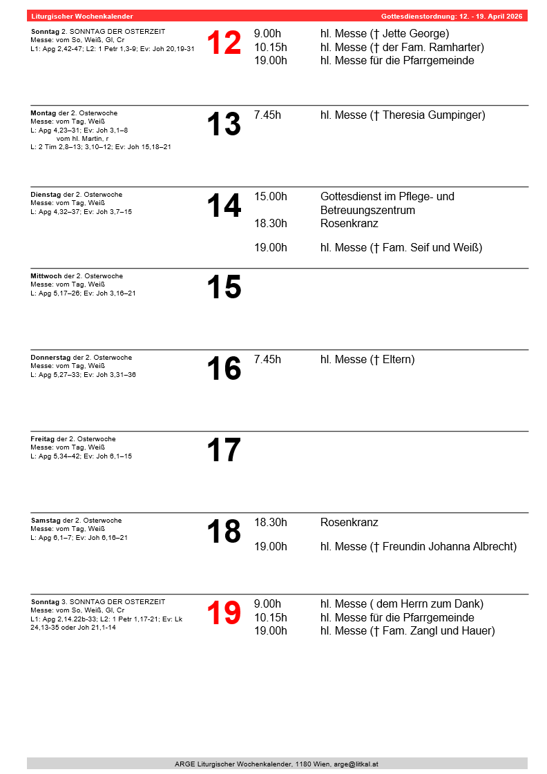 Liturgischer Kalender 12.-19.04.2026 (Download)